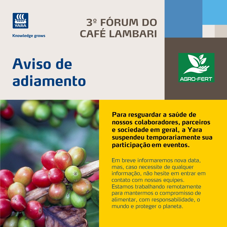 Durante os dias 24 e 25 de abril, seria realizado o 3° Fórum do Café Lambari, em parcer...