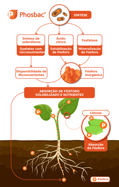 O Phosbac® é uma inovação na forma de inoculante líquido de alta tecnologia, desenvolvido a partir de uma cepa exclusiva, o Bacillus amyloliquefaciens (FZB45), resultado de mais de duas décadas de pesquisa. O Phosbac® solubiliza e mineraliza o fósforo retido no solo, estimulando o crescimento das raízes e da parte aérea das plantas, melhorando os efeitos da adubação e, consequentemente, elevando a produtividade. Sua eficácia é comprovada! O Phosbac® mantém sua viabilidade no tratamento de sementes por até 300 dias. E, para tornar essa escolha ainda mais vantajosa, a baixa dosagem faz do Phosbac® uma opção econômica e eficiente, proporcionando resultados excepcionais. COMPOSIÇÃO: Garantias Mínimas: Bacillus amyloliquefaciens (FZB45): 2,5×1010 UFC/mL RECOMENDAÇÃO: 50 mL/ha a 100 mL/ha CULTURAS: Milho e Soja